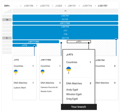 Test Grand Y DNA firmy FamilyTreeDNA stanowi uzupełnienie testu Y-DNA i oferuje wyjątkową możliwość zbadania linii męskiej. Dzięki analizie 23 milionów SNP otrzymujesz haplogrupę Y-DNA o niezrównanej dokładności. Dowiesz się również, kiedy rozdzieliły się gałęzie linii męskiej, i zidentyfikujesz najnowszego wspólnego przodka z dopasowanymi osobami.