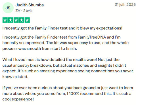 Jednak obsługa klienta FTDNA odpowiada wyłącznie w języku angielskim, bez automatycznego tłumaczenia lub alternatywy dla osób mówiących po francusku. Naszym zdaniem jest to główna słabość Family Tree DNA i mamy nadzieję, że obsługa klienta w końcu dostosuje się, aby lepiej wspierać społeczność francuskojęzyczną.